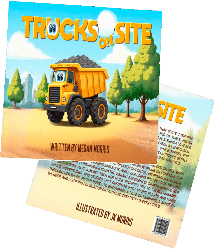 From the energetic rumble of construction vehicles in Trucks on Site to the gentle wisdom and comforting affirmations found in her Children’s Guidance Prayer book, Megan’s writing is a direct inspiration from the vibrant experiences of motherhood. Her three children have always been her muse, inspiring her to create engaging games, adventures, and stories that resonate with young hearts and minds. Through her work, Megan hopes to encourage a love of learning, a sense of wonder, and a strong foundation of faith and creativity in every child.